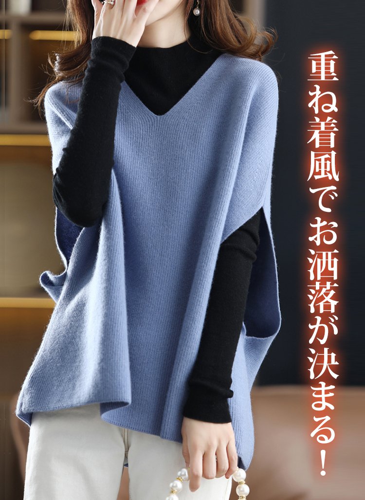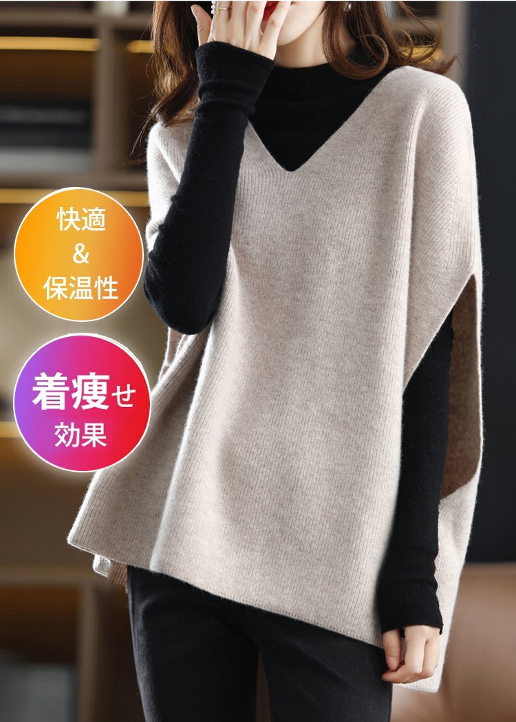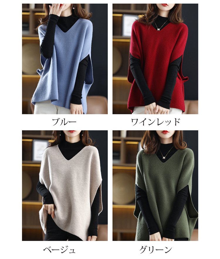 春秋冬まで着回せるベスト、4色展開!おしゃれなドルマンスリーブで、楽にアームの贅肉をカバーしてくれる!Vネックデザインで、小顔効果バッチリ!